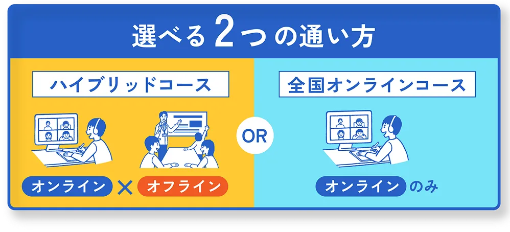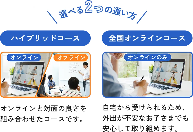 ハイブリッドコースと全国オンラインコースの2つのコースから、
