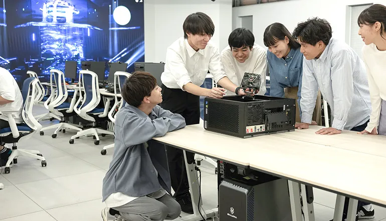 オンライン×オフラインのハイブリッド授業で、無理なく授業に参加できます。さらに高性能なゲーミングPCや高速通信回線を完備したオフライン環境がお子さまの通学の原動力になります。