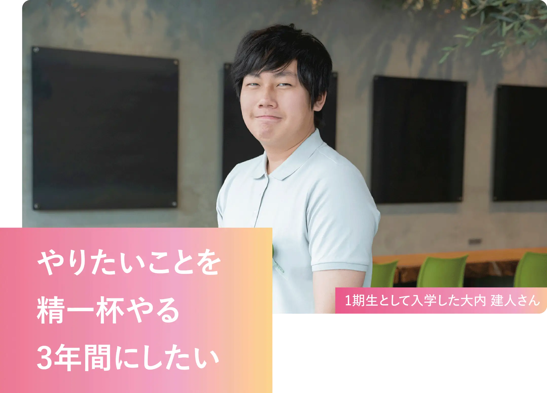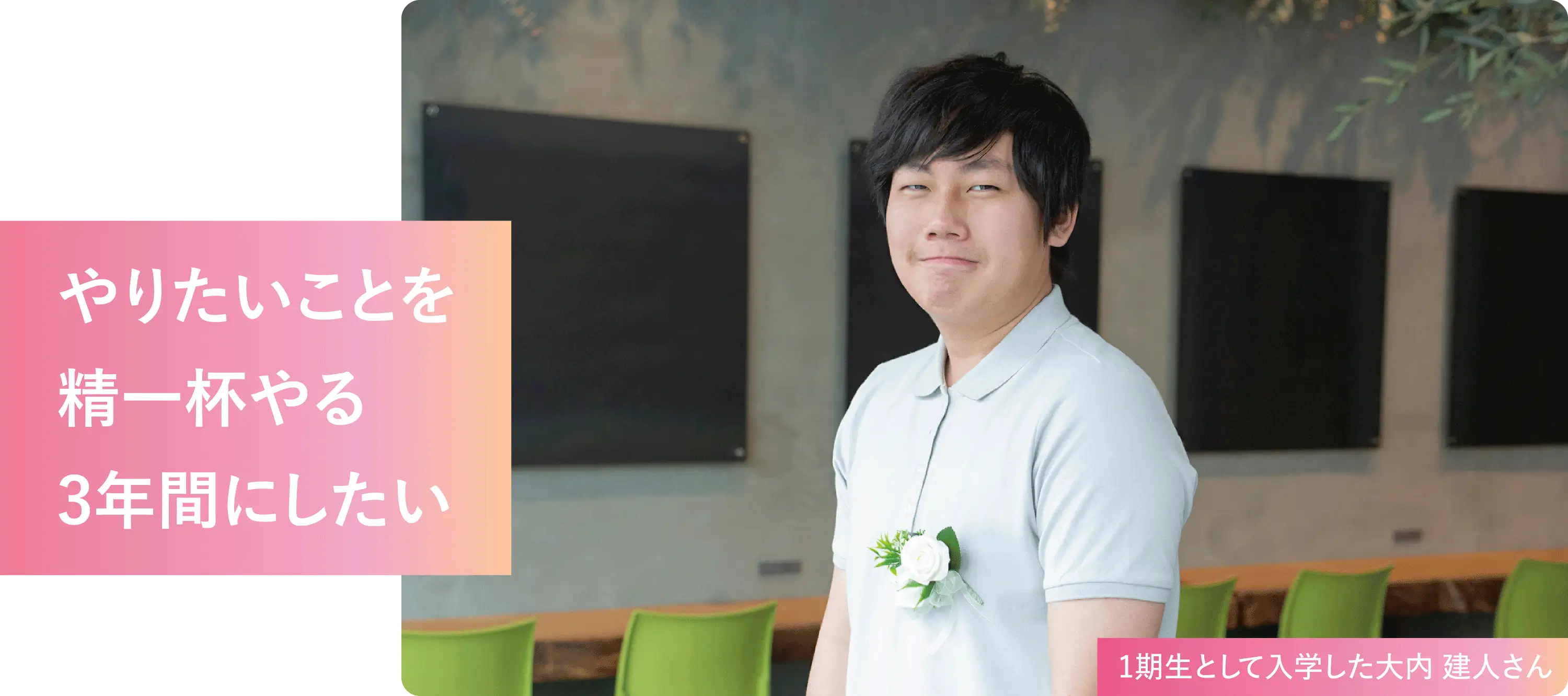 eスポーツという好きな分野を学べる学校が千葉にできるということを夏に知り、入学したいと思いました。自分は勉強みたいに考える分野より、ゲームやスポーツなどのように体を動かす方が肌に合っていると思ったので、進路に迷いはなかったです。1期生なので、自分たちで新しい道を切り開いていけるという点や、自分にとって関心のあるドローンを使った学習など、あらゆる面で理想とマッチしていました。「学んでみたい!」と感じたカリキュラムを頑張るのはもちろん、「eスポーツが好き」という仲間と一緒に、楽しい学校生活を送っていきたいと思っています。やりたいことを精一杯やれる3年間にしていきます!