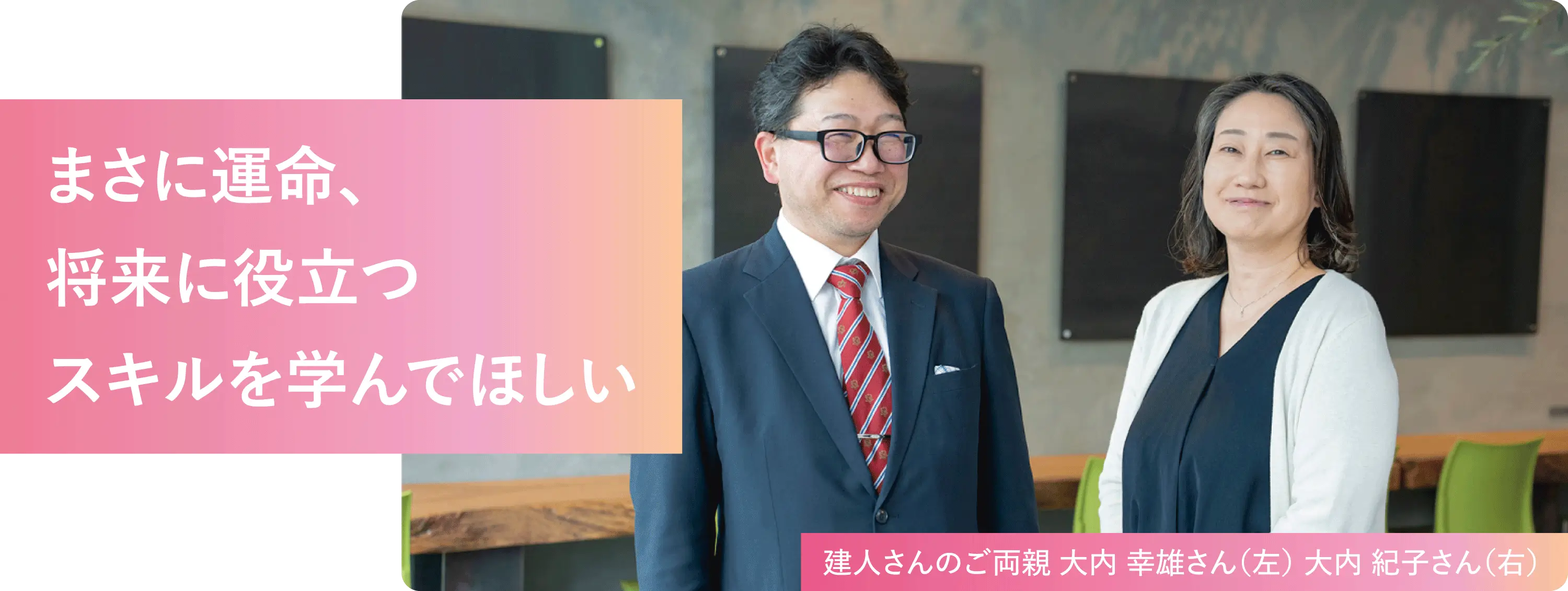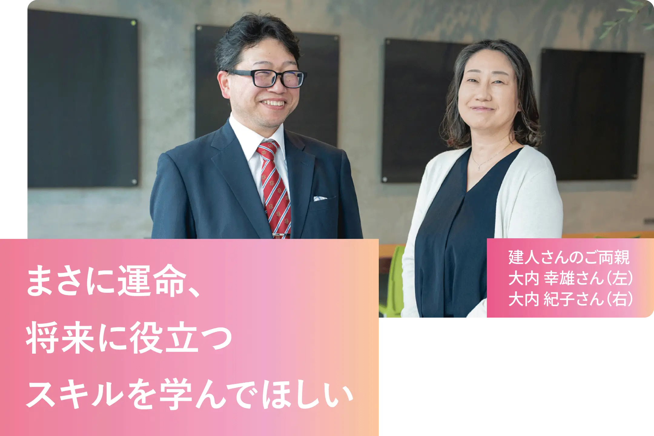 これからデジタル化が進む時代にとって、最先端の専門スキルを学べる環境は、うらやましいとも感じます。私たちも建人が進路を決めるまで、eスポーツ=教育というのは考えたことはありませんでした。ただ、建人が積極的にスキルを吸収できる環境ということもあり、今は大きな期待を寄せています。この恵まれた環境で3年間を楽しく過ごし、eスポーツをきっかけに、社会で自立していくための技能と人間性を身に付けていってほしいですね。